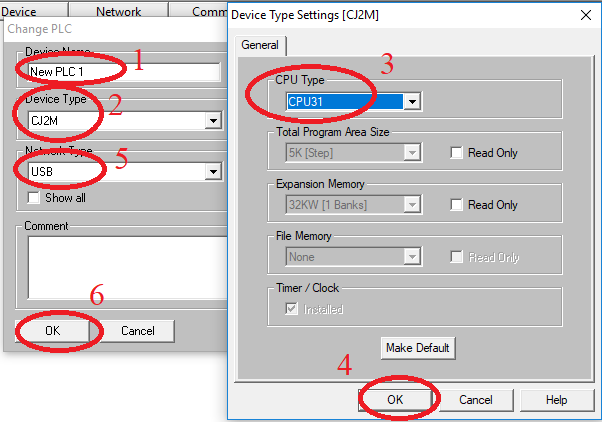 Pada artikel ini ceritanya adalah PLC kita beri nama New PLC1, type perangkat adalah CJ2M dengan nomer CPU 31.