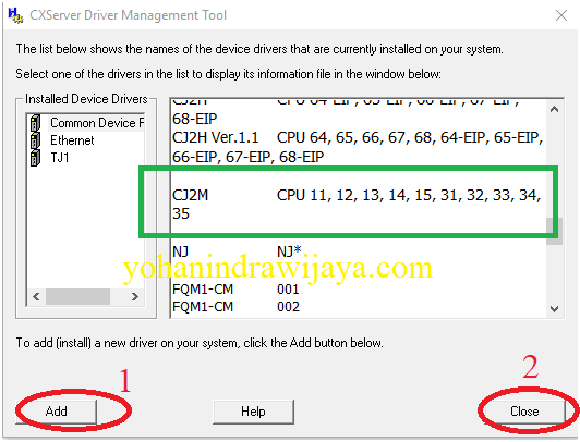 Kita memilih yang Common Device saja. Karena disitu ada PLC yang tengah kita monitoring. Yakni CPU type CJ2M dengan nomer CPU 31.