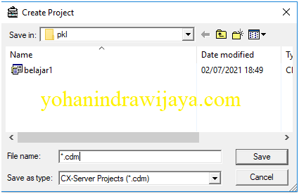 Berilah nama file tersebut dengan nama yang unik. Dalam contoh ini file diberi nama ( contoh ) belajar1 dengan format *.cdm pada path D:\pkl\