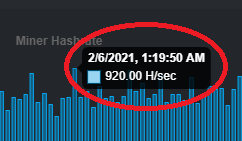 Hashrate ini seperti tampilan bargraph yang menginformasikan keadaan hashrate mesin kita dengan Pool. Sebuah RIG dengan cangkul elektronik RX580 4GB mampu hingga 920 Hash/detik.