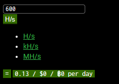 Misalkan kali ini Miner kita bekerja dengan speed 600 Hash/detik , maka akan didapat 0,13 HAVEN setiap hari atau 0 dollar tiap hari.